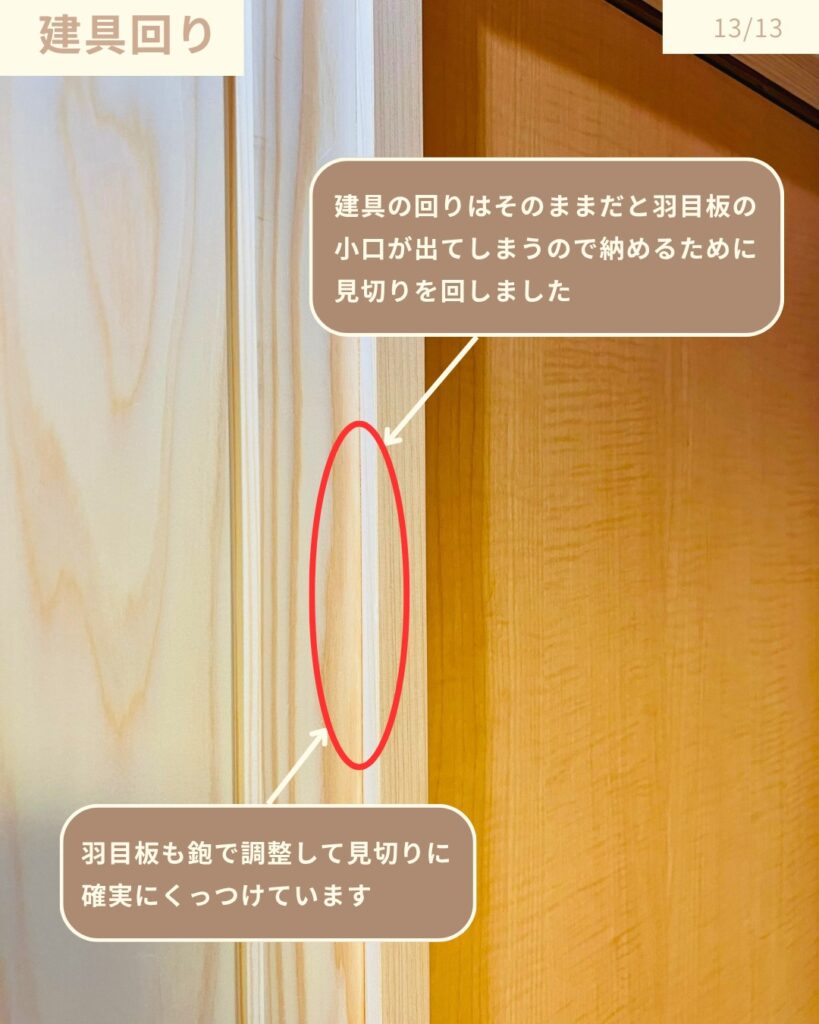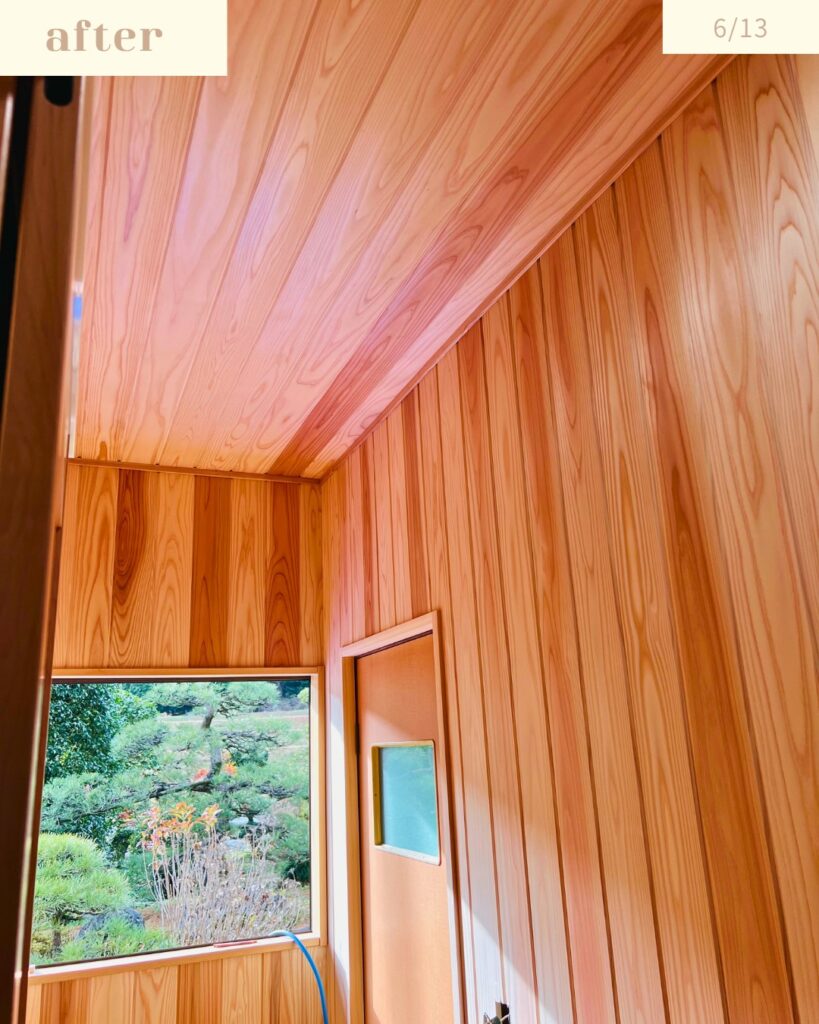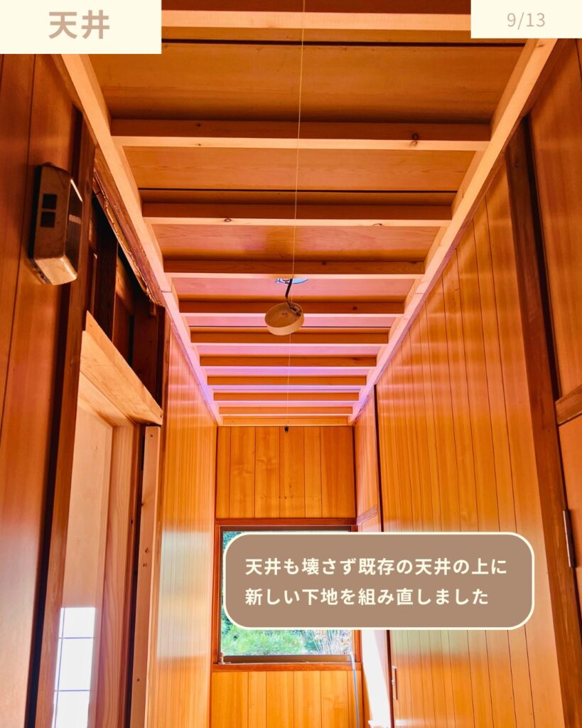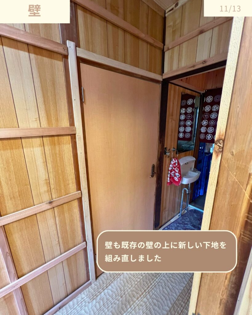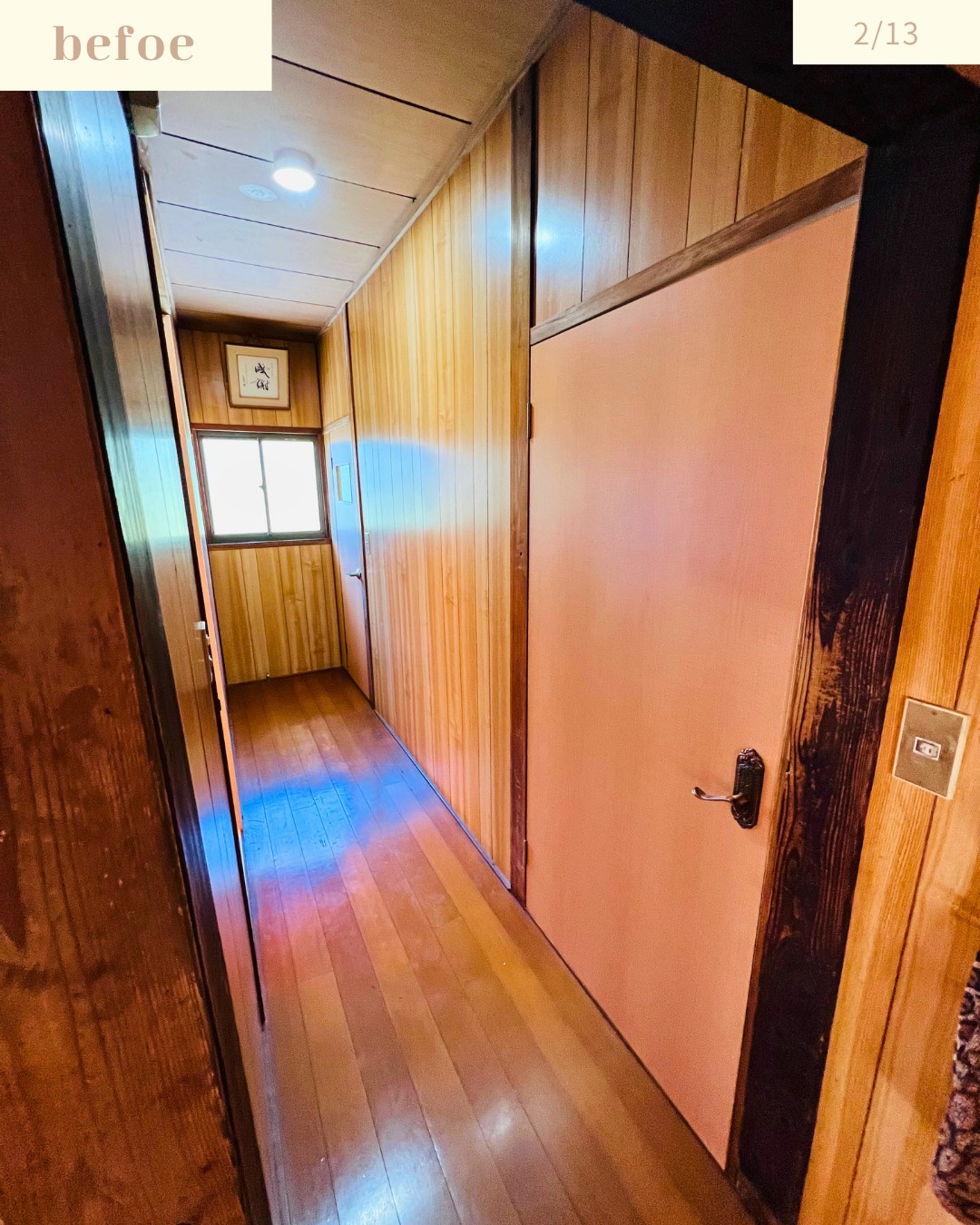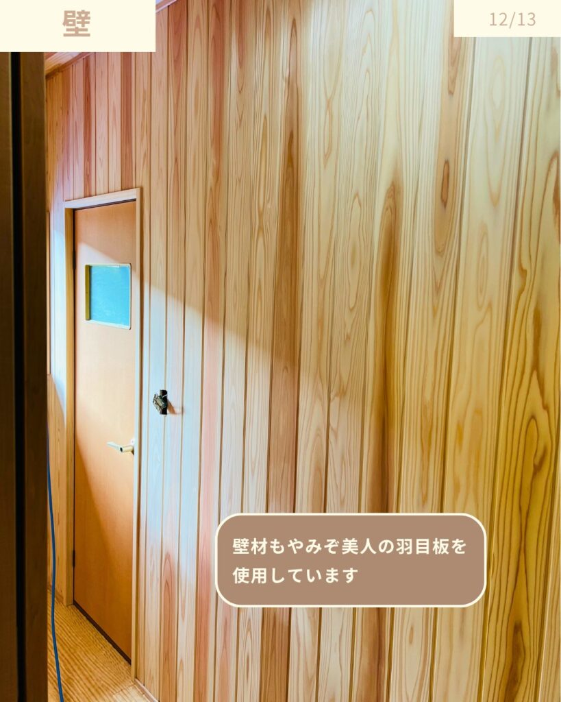 K様邸 廊下の床・壁張り替え工事 2024-08-01 2025-11-27 施工事例 #内装リフォーム#内装工事#壁#天井#床#廊下#張り替え工事 施工範囲 7畳(3.5坪) 施工費用 40万3000円 施工内容 壁板張り工事 床張り替え工事 施工ポイント 天井・壁の羽目板は八溝びじんを使用しています。 巾木・廻り縁・見切りはヒノキ材を使用しています。 床材はピノアース足感フロア(スプーン)・建具はウッドワン(woodone)ドレタスのアウトセットを使用しています。 建具の周りに取り付けた見切りの接合部・見切りと羽目板の接合部などくっつけるところは確実にくっつけて作業しています。 羽目板の張る順番も「色合いや木目」を考え、仕上がりをイメージしながら張っていますのでとてもキレイな仕上がりになります。 アウトセットの建て付けも隙間なく使いやすいように取り付けています! 施工事例 #内装リフォーム#内装工事#壁#天井#床#廊下#張り替え工事
