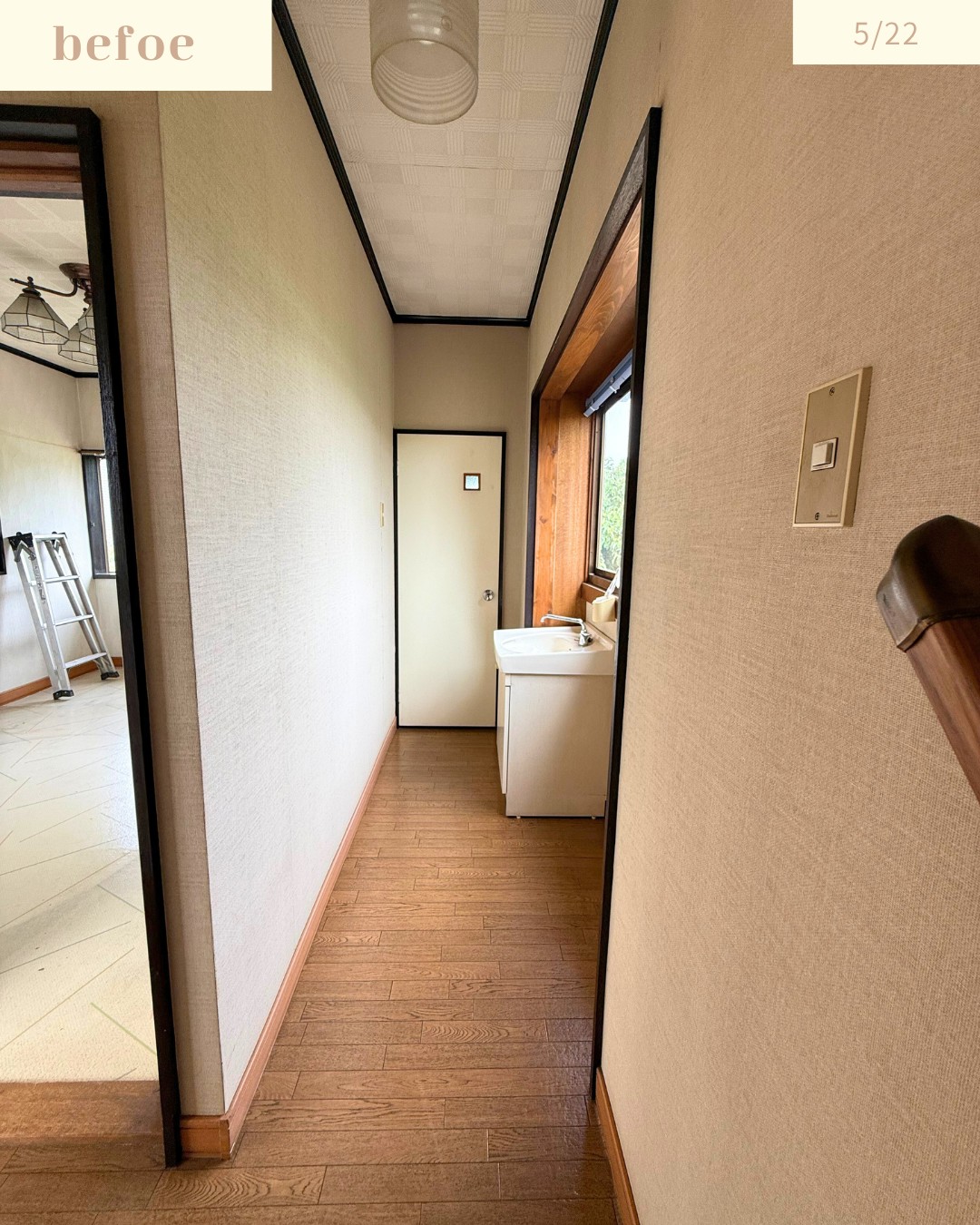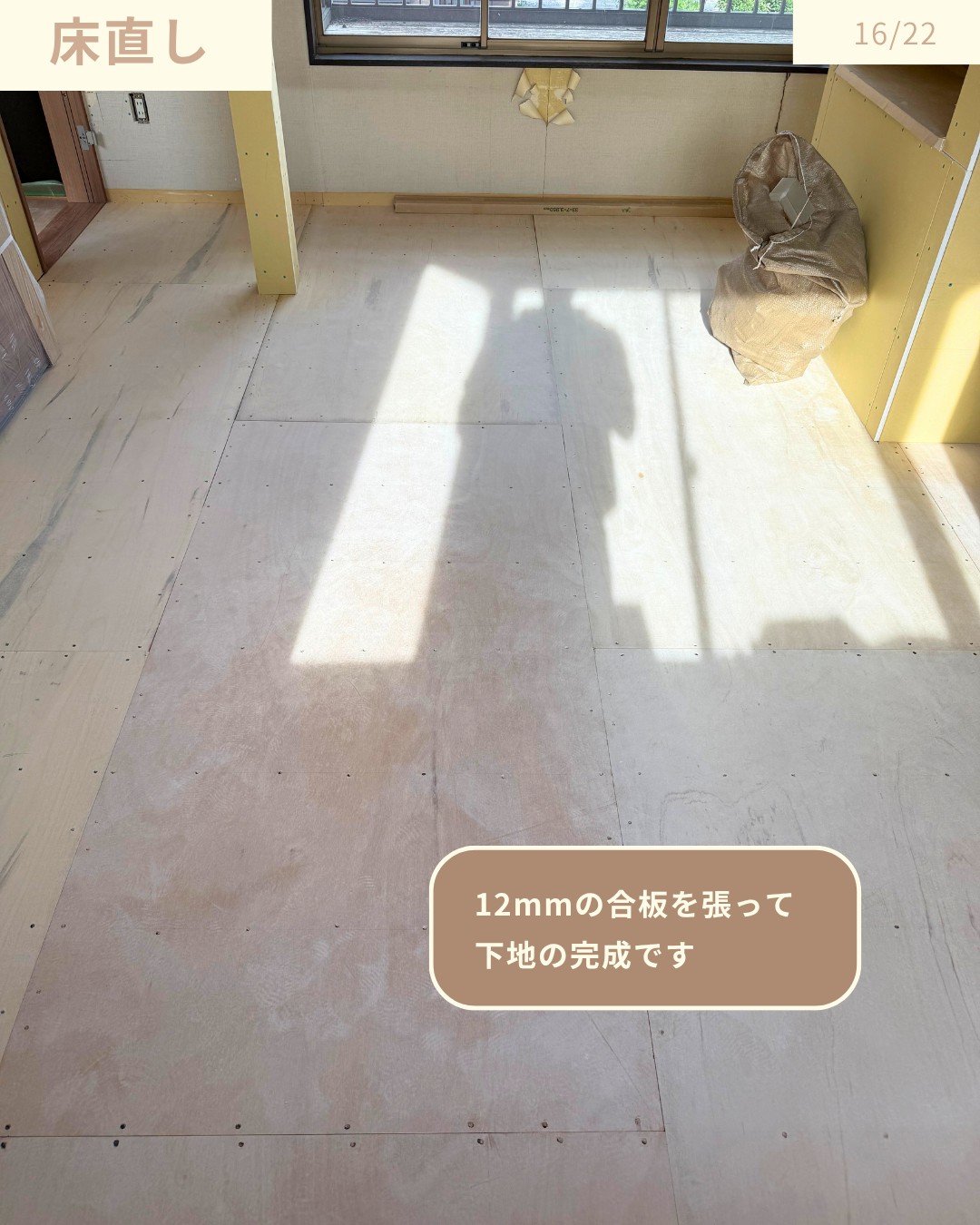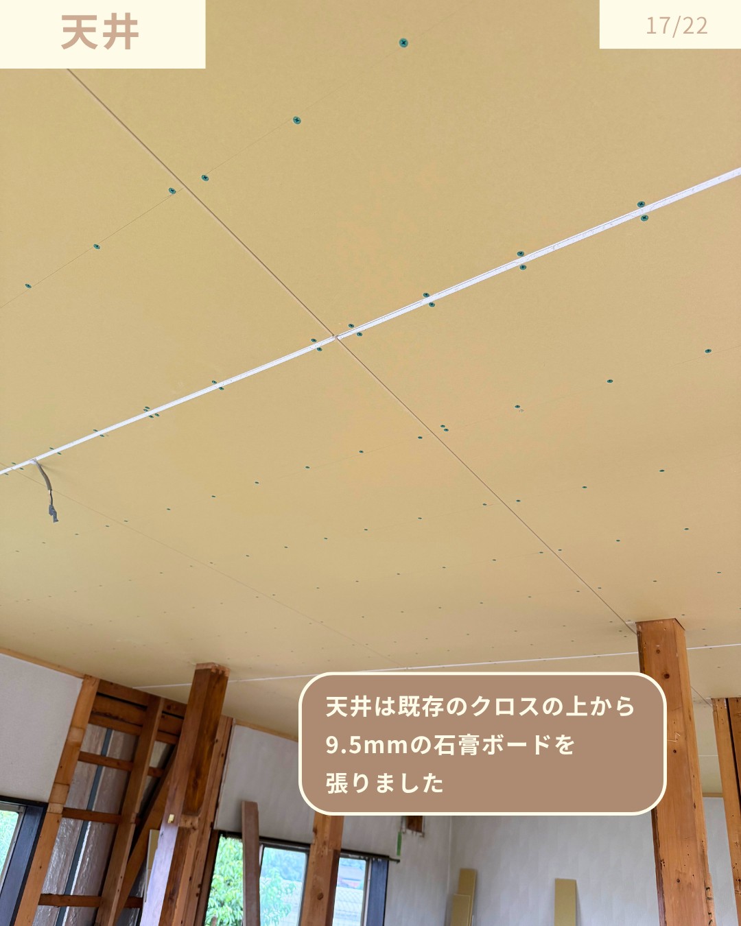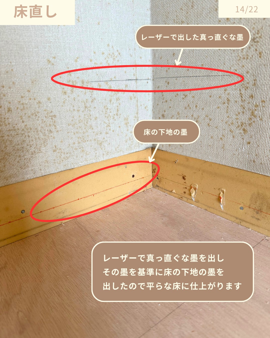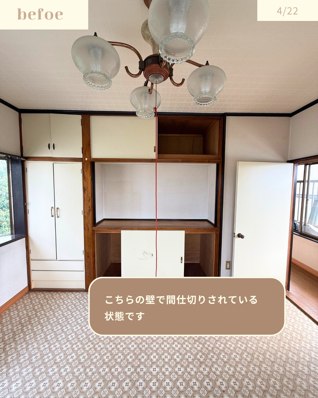 I様邸 作業場改修工事 2025-07-01 2025-11-27 施工事例 #作業場#内装リフォーム#内装工事#収納#壁#天井#床#張り替え工事#改修工事#解体工事#造作工事#間仕切り 施工範囲 18畳(9坪) 施工費用 192万4500円 施工内容 間仕切り・壁解体工事 床張り替え工事 天井張り替え工事 壁張り替え工事 収納造作工事 施工ポイント 床はかなりビクビクでしたが、大引はしっかりしていたので解体はせずにその上から下地を組み直しました。(解体をしてしまうと解体費や処分費など費用がかなり上がってしまうから) ビクビクを確実に平らにするために、レーザーで水平な墨を出しそれを基準に下地を作り直しました。 床材はクッションフロア、巾木はソフト巾木を使用しています。 費用をできるだけ抑えたいという施主様の要望がありましたので、そのまま残す壁はいじらずにその上から新しいクロスを貼る施工方法にしました。 間仕切りに使用されていた躯体を収納スペースとして活用しました。 レールはどこでも動かせるよう可動レールにしました。棚板はwoodoneの棚板を使用しています。 施工事例 #作業場#内装リフォーム#内装工事#収納#壁#天井#床#張り替え工事#改修工事#解体工事#造作工事#間仕切り